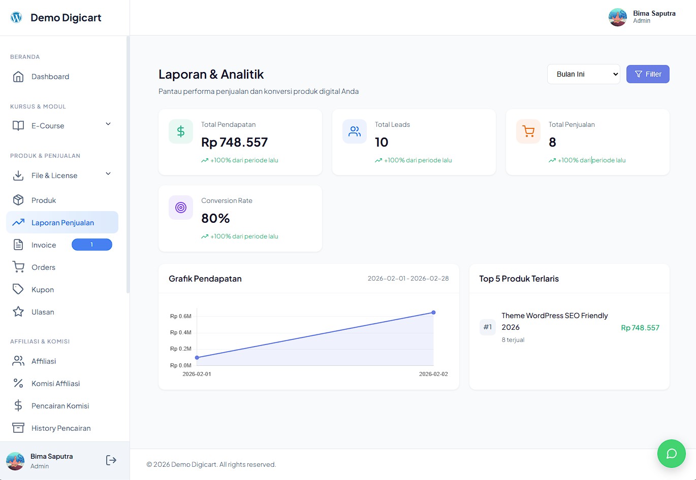 Ini adalah tampilan dashboard digicart, modern dan good looking.
